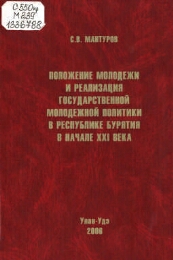 Положение молодежи и реализация государственной молодежной политики в Республике Бурятия в начале 21 века / С. В. Мантуров ; Ком. по молодеж. политике М-ва образования и науки Респ. Бурятия. - Улан-Удэ : Республиканская типография, 2006. - 142 с. - Библиогр. в подстроч. примеч.