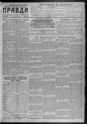 Правда : орган Центрального Комитета Коммунистической партии Советского Союза. - 1912, 5 мая (22 апреля) - 1991, 22 августа. - Москва, 1917, 9 ноября (26 октября) - 1991, 22 августа. - Заглавие: 1912, № 1 (5 мая (22 апр.)) - 1913, № 152 (356) (18(5) июля) Правда ; 1913, № 1 (26(13) июля) - 17 (14(1) авг.) Рабочая правда ; 1913, № 1 (14(1) авг.) - 31 (20(7) сент.) Северная правда ; 1913, № 1 (24(11) сент.) - 20 (22(9) окт.) Правда труда ; 1913, № 1 (14(1) окт.) - 52 (18(5) дек.) За правду ; 1913, № 1 (20(7) дек.) - 1914, № 16 (34) (4 февр. (21 янв.)) Пролетарская правда ; 1914, № 1 (5 февр. (22 янв.)) - 92 (6 июня (21 мая)) Путь правды ; 1914, № 1 (5 мая (22 апр.)) - 9 (20(7) июля) Рабочий ; 1914, № 1 (4 июня (23 мая)) - 35 (21(8) июля) Трудовая правда ; 1917, № 1 (5(18) марта) - 99 (18(5) июля) Правда ; 1917, ненум вып. (19(6) июля) Листок "Правды" ; 1917, № 1 (23 июля) - 16 (10 авг.) Рабочий и солдат ; 1917, № 1 (26(13) авг.) - 9 (5 сент. (23 авг.)) Пролетарий ; 1917, № 1 (7 сент. (25 авг.)) - 12 (15(2) сент.) Рабочий ; 1917, № 1 (16(3) сент.) - 46 (8 нояб. (26 окт.)) Рабочий путь ; 1917, № 170 (101) (9 нояб. (27 окт.)) - 174 (105) (13 нояб. (31 окт.)) Правда (Рабочий путь); 1917, (9 нояб. (27 окт.)) - Правда. Подзаг.: 1913 -1914 рабочая газета, орган ЦК и Петербургского комитета РСДРП(б) ; 1917 орган ЦК и Петроградского комитета РСДРП(б), орган ЦК РСДРП(б) ; 1918-1991 орган РКП(б), Центрального комитета и МК ВКП(б), КПСС. Гл. ред.: Молотов В. М., Сталин И. В., Бухарин Н. И., Ольминский М. С., Мехлис Л. З., Суслов М. А., Шепилов Д. Т., Зимянин М. В., Афанасьев В. Г. и др. Место издания: 1912, 5 мая (22 апр.) - 1914, 9 (22) июля Санкт-Петербург ; 1917, 5 (18) марта - 1918, 15 (2) марта Петроград ; 1918, 16 (3) марта - 1991, 22 августа Москва. Перерыв в издании: 1914, 9 (22) июля - 1917, 4 (17) марта. Выходит ежедневно. - Выходит с 5 мая (22 апр.) 1912 г.