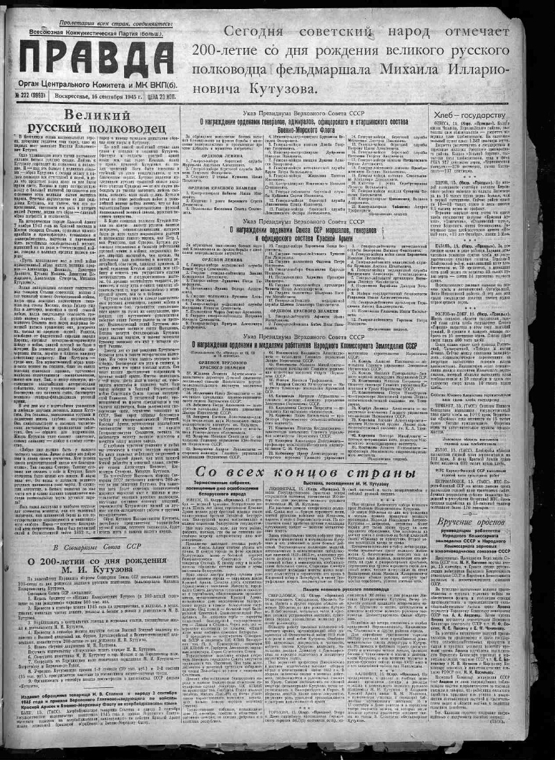 1945, № 222 (9993) (16 сентября). - 1945. - 4 с.