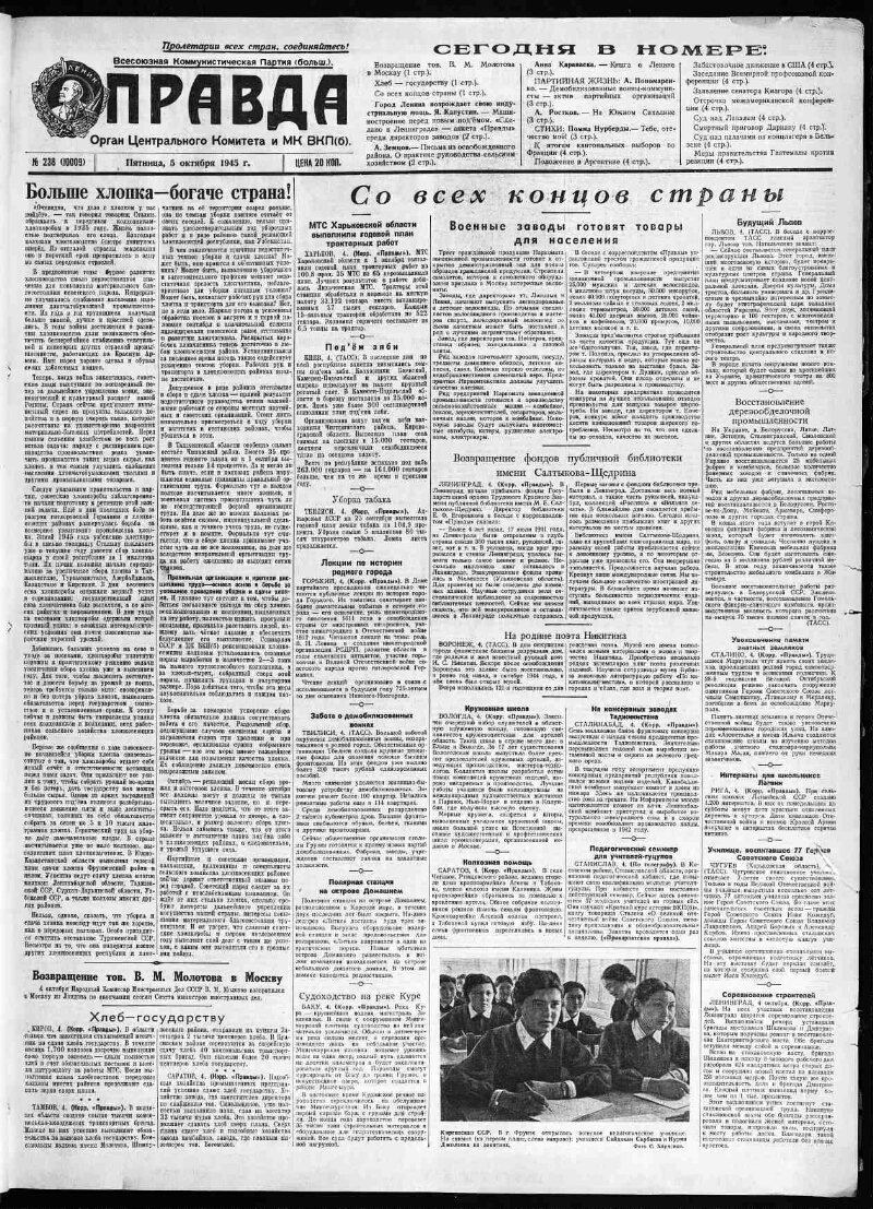 Правда. 1945, № 238 (10009) (5 октября)