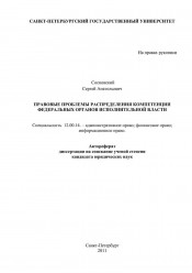 Правовые проблемы распределения компетенции федеральных органов исполнительной власти : автореферат диссертации на соискание ученой степени кандидата юридических наук : специальность 12.00.14 / Сосновский Сергей Анатольевич ; Санкт-Петербургский Государственный Университет. - Санкт-Петербург, 2011. - 25 с. - Библиогр.: с. 25 (5 назв.)