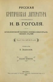 Русская критическая литература о произведениях Н. В. Гоголя : хронологический сборник критико-библиографических статей / собрал В. Зелинский. - Изд. 4-е. -Москва : Типо-литография В. Рихтер, 1910. -
