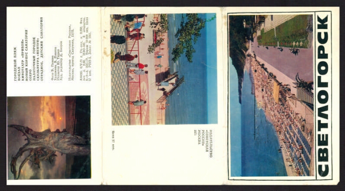Светлогорск : [комплект открыток] / фото В. Панова ; художник В. Павлов. - (Санкт-Петербург: Президентская библиотека , 2012). -18 файлов (25,73 Мб, JPEG) : цв.. - Режим доступа: интернет-портал Президентской библиотеки. Заглавие с экрана. На клапане обложки перечень открыток, входящих в комплект. Электронная репродукция комплекта открыток: Светлогорск [Изоматериал] / фото В. Панова ; художник В. Павлов. Москва : Советская Россия, 1971. 8 листов в обложке: цветной офсет. А 06085. 57 коп. Тираж 50 000 экз. Местонахождение: Детский музей открытки, Санкт-Петербург. Содержит открытки: Городской пляж ; Вокзал ; Кинотеатр "Прибой" ; Новый корпус санатория ; Озеро ; Палаточный городок ; Скульптура "Нептун" ; Отрадное. Детский санаторий. Копирование пользователями не разрешается.