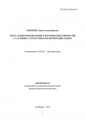 Свето- и цветообозначение в поэтическом творчестве С. А. Есенина: структурно-семантический аспект : автореферат диссертации на соискание ученой степени кандидата филологических наук : специальность 10.02.01 / Кокорин Сергей Александрович ; [Челяб. гос. пед. ун-т]. - Челябинск, 2012. -21 с. ; 21. - Место защиты: Челяб. гос. пед. ун-т. - Библиогр.: с. 20 (5 назв.) и в подстроч. примеч. . -120 экз.