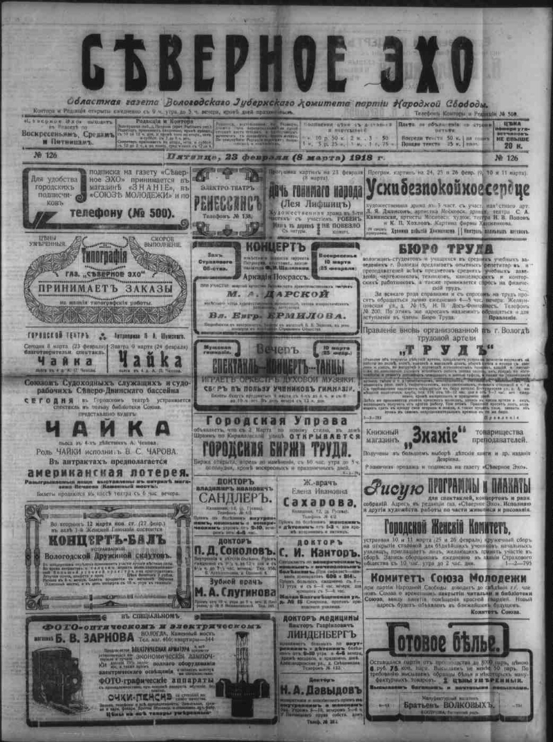 Северное эхо. 1918, № 126 (8 марта)