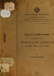 Сельскохозяйственный обзор Тобольской губернии ... / Главное управление землеустройства и земледелия. Статистический отдел Тобольского переселенческого района. - Тобольск : типография Епархиального братства, 1915-1916. - 27 см. - В надзаг. данных за 1916 г.: Министерство земледелия.