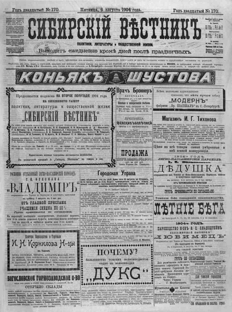 1904, № 170 (6 августа). - 1904. - 4 c.