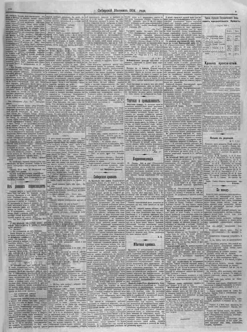 Сибирский вестник политики, литературы и общественной жизни. - 1885, 16 мая - 1905, 31 декабря. - Томск, 1885-1905. - Редакторы: В. П. Картамышев (до 1894 г.), Г. В. Прейсман (1894-1901), М. Ф. Картамышева (1901-1902), Н. Н. Соин (1902-1905). Издатели: В. П. Картамышев, М. Ф. Картамышева, М. Н. Загибалов. Перерыв в издании: 1888, 20 мая - 1 сентября ; 1897, 21 мая - 16 декабря. В 1888-1895 гг. выходили приложения к отдельным номерам. Выходит ежедневно, кроме дней после праздничных. Ежедневная газета политики, литературы и общественной жизни. Основана В. П. Картамышевым. Издавалась в 1885-1905 гг. в Томске. Периодичность: 1885-1893 гг. – 1-3 раза в неделю, с 1894 г. – ежедневно