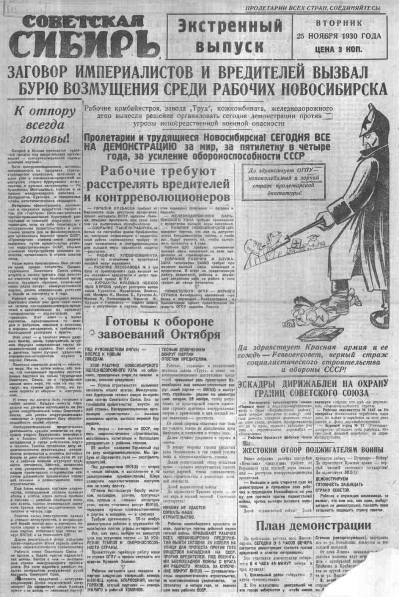 Советская Сибирь : орган Новосиб. обкома и горкома ВКП(б) и обл. Совета депутатов трудящихся. - Новосибирск , 1919-
