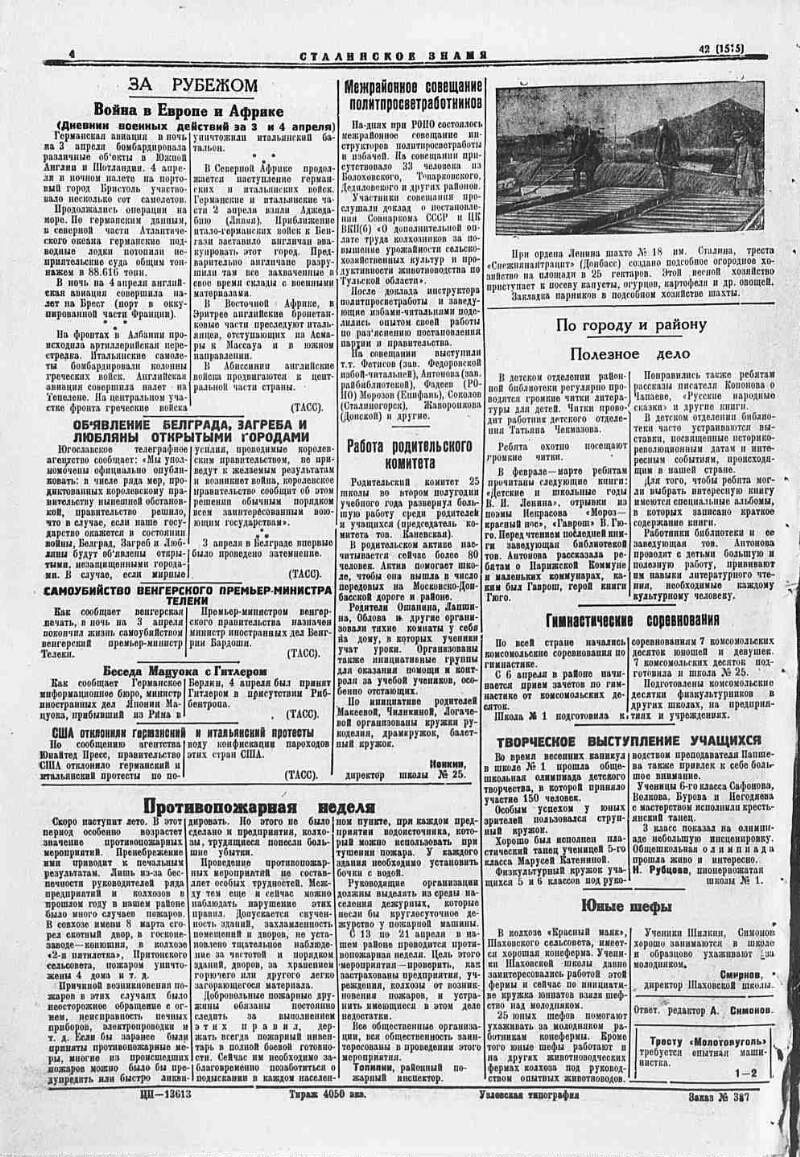 1941, № 42 (1515) (6 апр.). - 4 с.