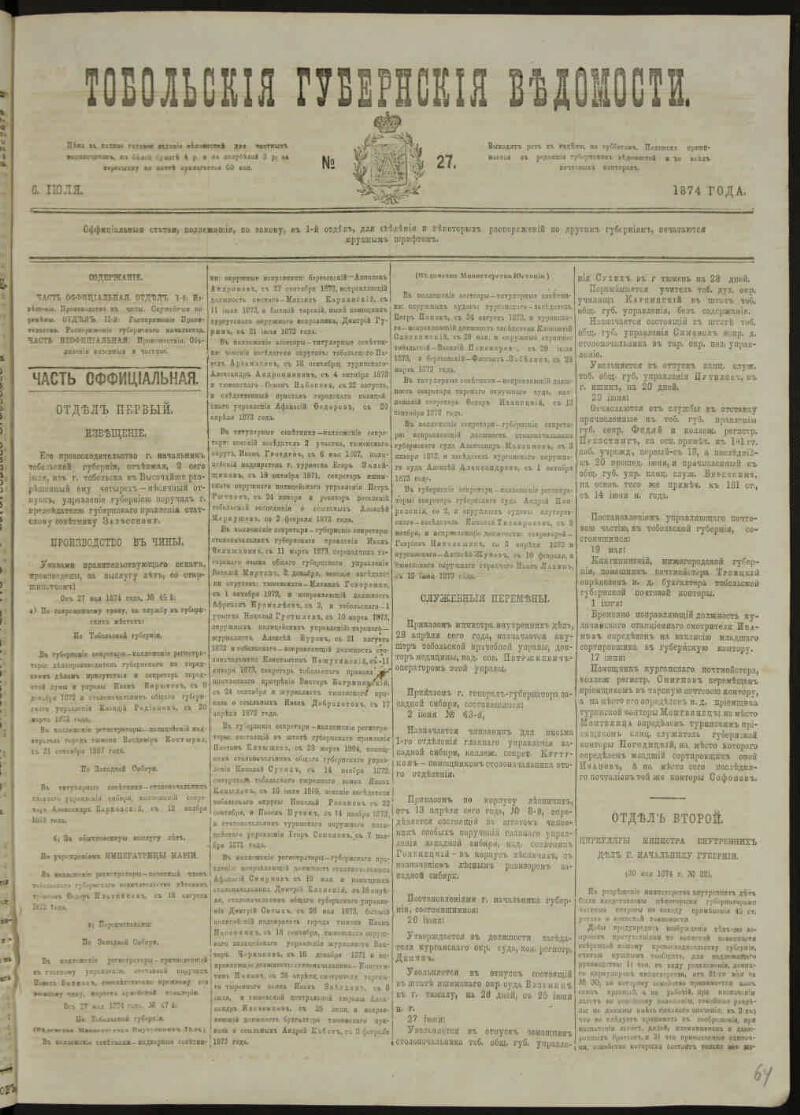 1874, № 27 (6 июля). - 1874. - 6 с.