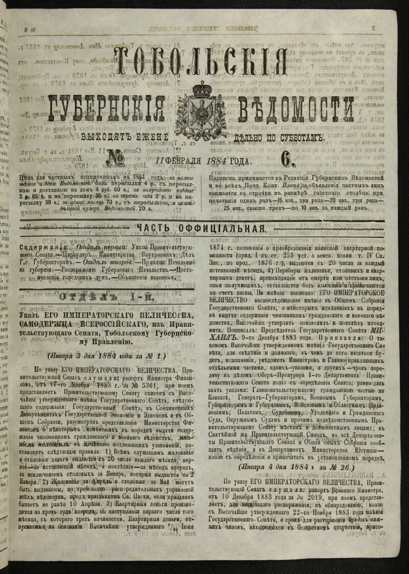 1884, № 6 (11 февр.). - 1884. - 8, 9, [1] с.