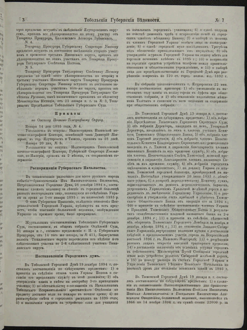 1895, № 7 (15 февр.). - 1895. - 14 с. - Часть официальная