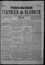 Тобольские губернские ведомости. - 1857, 27 апр. - 1918, 3 апр. - Тобольск, 1857-1918. - Выходили в 2 ч.: офиц. и неофиц.; с 1893 по 1897 обе части изд. раздельно. Прил.: Ежегодник Тобольского губернского музея. Вып. 7-8. 1896-1897 ; Рукописи библиотеки Тобольского губернского музея за XVII и первую четверть XVIII столетия. 1645-1676. (Вып. 2-й). 1896 ; Отдел сельского хозяйства и кустарной промышленности. 1896-1906 ; Школьный отдел при неофициальной части "Тобольских губернских ведомостей". 1907-1917 ; Прил. к отд. номерам. Указ.: за 1858-1867, 1893