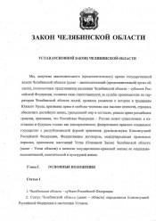 Устав (Основной Закон) Челябинской области : Закон Челябинской области : [текст]. - [Челябинск, 2006]. - 39, [1] с. - В конце текста подпись: Губернатор Челябинской области П. И. Сумин, 09.06.2006 г. Содерж.: Устав (Основной Закон) Челябинской области ; Постановление Об Уставе (Основном Законе) Челябинской области / Законодат. Собр. Челябин. обл.