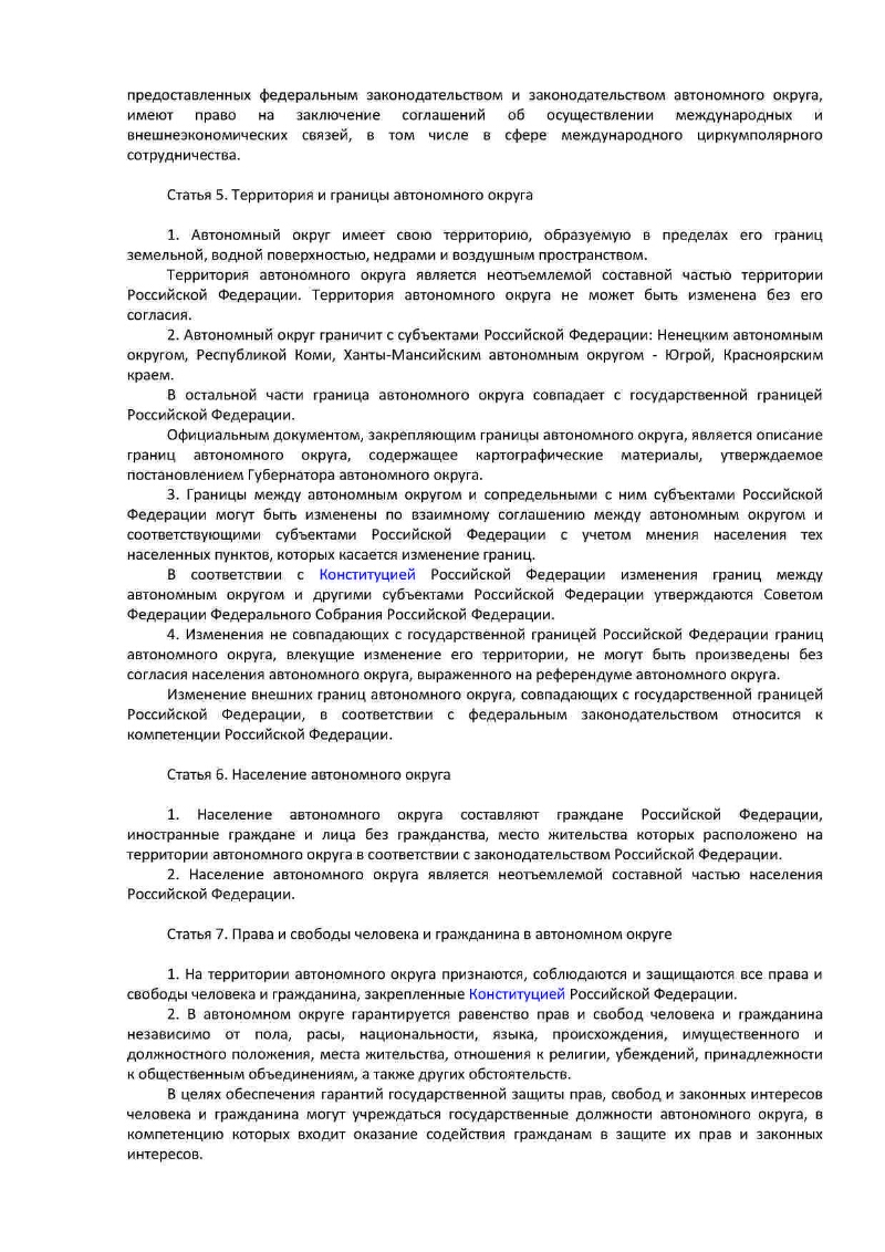 Устав (Основной закон) Ямало-Ненецкого автономного округа : принят Государственной Думой Ямало-Ненецкого автономного округа 27 декабря 19981 года. - [Салехард, 1998]. - 34 листа. - В конце текста подпись: Губернатор автономного округа Ю. В. Неелов. Место и дата подписания: г. Салехард 28 декабря 1998 года. Электронная версия правого акта (34 файла, 300 dpi, JPEG, 34 МБ). Опубликован на сайте Законодательного Собрания Ямало-Ненецкого автономного округа. Законодательное Собрание Ямало-Ненецкого автономного округа, сайт. http://zsyanao.ru/.