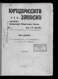 Юридические записки, издаваемые Демидовским юридическим лицеем / под ред. А. Р. Свирщевского [и др.]. - Ярославль, 1908-1914. - Редакторы: Ф. В. Тарановский (1908), А. Л. Байков (1908-1909), П. В. Гидулянов, Р. М. Орженицкий, С. Е. Сабинин, М. П. Чубинский (1908-1910), Г. С. Фельдштейн (1908-1911), А. Р. Свирщевский (1908-1914), Н. Н. Голубев, В. Н. Мышцын, Е. Д. Синицкий, В. Г. Щеглов (1909-1910), А. Л. Фрейтаг-Лоринговен (1911), Б. А. Кистяковский (1912-1914), Л. С. Таль, В. Н. Ширяев (1913-1914). В течение года пагинация сплошная. В 1908-1910 гг. периодичность 2 выпуска в год, всего вышло 6 выпусков. В 1911-1914 гг. периодичность доведена до 4-х выпусков в год, вышли выпуски 7-22. В качестве приложения в 1908-1909 гг. в журнале печатались протоколы общих собраний Ярославского юридического общества (с 9 октября 1904 г., не закончены). - Указатели: Оглавление седьмого тома "Юридических записок" (выпусков 19-22), 1914 ; "Систематический [и алфавитный] указатель статей, помещенных в "Юридических записках" за пятилетие 1908-1911 гг. (1912, вып. 4 (14), с. 753-754)