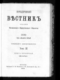 Юридический вестник : издание Московского юридического общества. - Г. 1 1867, кн. 1 (июль) - Г. 24 1892, т. 12. - Москва, 1867-1892. - Редакторы: Н. В. Калачев (1867-1870), с 1872 года - В. Н. Лешков и А. М. Фальковский, с 1878 года - В. Н. Лешков, М. М. Ковалевский и С. А. Муромцев; с 1880 года и до конца главным и постоянным редактором был С. А. Муромцев, а в качестве второго редактора являлись разные лица, часто сменявшиеся (В. Н. Лешков, М. М. Ковалевский, В. А. Гольцев, В. М. Пржевальский). Журнал без предварительной цензуры издавался в Москве в 1867-1892 годах Московским юридическим обществом и в Санкт-Петербурге (с 1860 по 1864 год в виде приложения к "Архиву Исторических и практических сведений"). Выходил с июля 1867 года по июнь 1868 года, после шестимесячного перерыва - в 1869 году, затем прекратился и возобновился лишь в апреле 1871 года, после чего выходил регулярно до конца 1892 года. Загл.: 1867/1868-1877 Юридический вестник, издаваемый Московским юридическим обществом; 1877-1892 Юридический вестник. Подзаг.: 1877-1892 Издание Московского юридического общества. Выходит взамен "Юридической газеты"