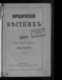 Г. 9 1877, [кн. 7/8], июль-август. - В Университетской типографии (М. Катков), 1877. - 224, 86 с. - Загл. обл. : Юридический вестник. 1877. Книжки седьмая и восьмая. Июль и август. Содерж.: Усвоение личностью права / Метла. О влиянии отчуждения нанятого имущества на существование найма (продолжение) / [соч.] В. А. Умова. Финансовая администрация во Франции от средних веков до 1789 года / [соч.] профес. А. Н. Стоянова. Психические особенности преступников по новейшим исследованиям / проф. Л. Владимирова. О покушении с негодными средствами и над негодным объектом по взглядам теории и по русскому праву (продолжение) / М. Рудинского. Очерки семейных отношений по обычному праву русского народа / [соч.] Алекс. Смирнова, [и др.]