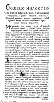 [Манифест об отрешении от наследия его царского величества перворожденного сына царевича Алексея Петровича] : [Указ Петра I от 3 февр. 1718 г.]. - [Москва : б. и., 1718]. - 7 с. - Судя по правописанию, это изд. "Манифеста" напеч. в Москве, вероятно, одновременно с присягой царевичу Петру Петровичу 3 февр. 1718 г. - Размер набора 254x130 мм. - Изд. также в Санкт-Петербурге 25 февр. 1718 г. и без указания даты изд. - Без заглав. листа. Описан по первой странице текста. - Текст начинается словами: Божиею милостию мы Петр Первыи, царь и самодержец всероссиискии, и протчая, и протчая, и протчая; Объявляем духовнаго военнаго и гражданскаго и всех протчих чинов людем, всероссиискаго народа, нашим верным подданным. Мы уповаем, что болшеи части из верных подданных наших... - Загл. дано по ПСЗ (Т.5, № 3151). - СК 1708-1725
