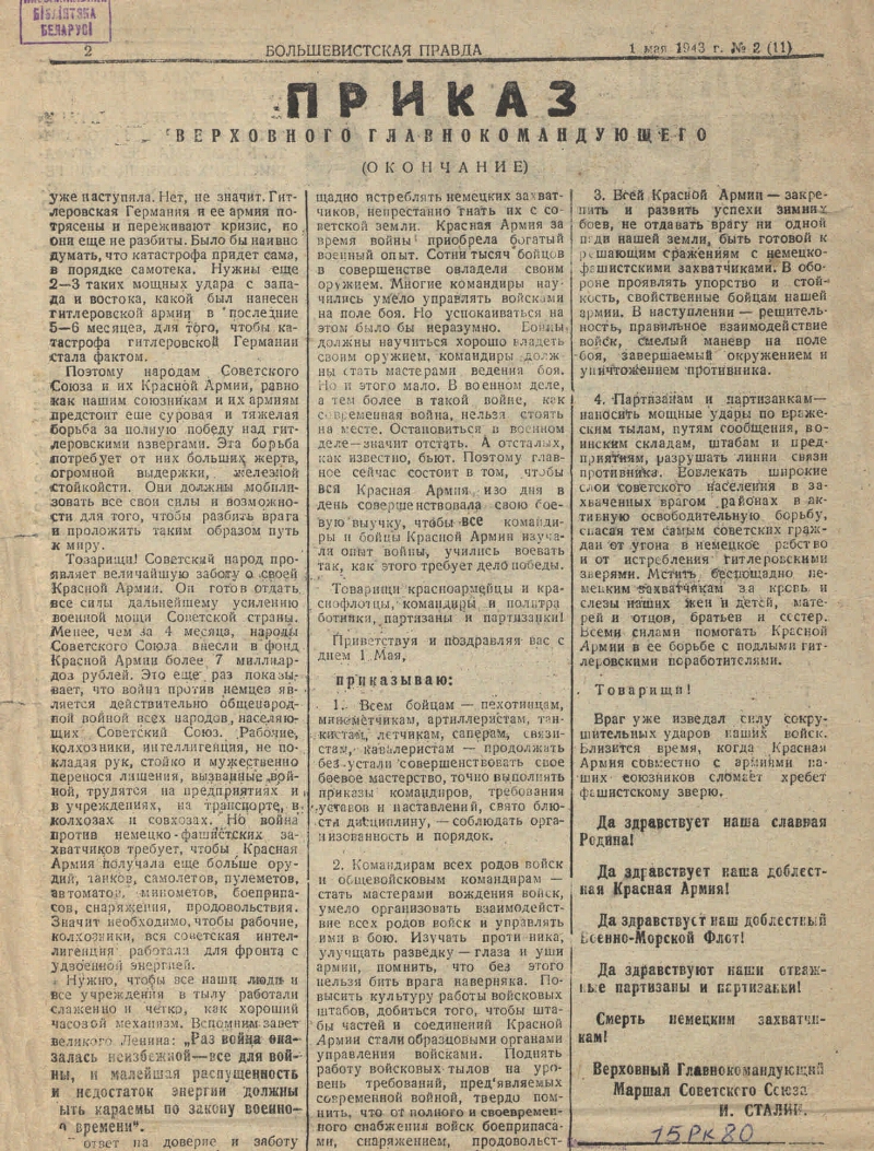 1943, № 2 (11) (1 мая). - 1943. - 2 c.