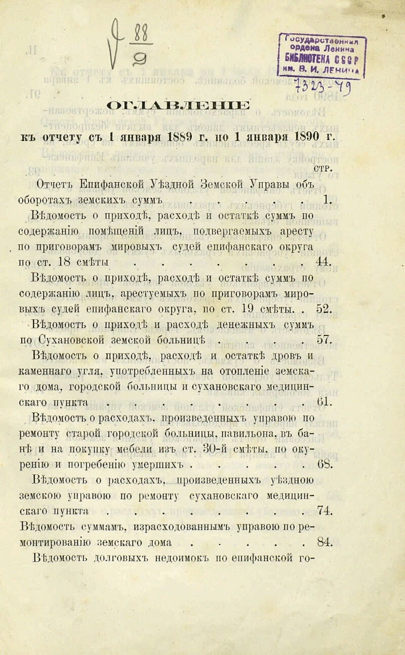 Генеральный отчет о приходе и расходе денежных сумм, бывших в распоряжении Епифанской уездной земской управы ...