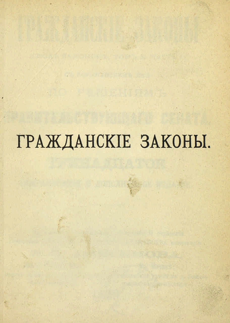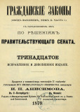 Гражданские законы : (Свод законов, том Х, часть I), с разъяснением их по решениям Правительствующего Сената. - 13-е изд., испр. и доп. - [Санкт-Петербург] : Тип. Реттера и Шнейдера, 1879. - XVI, 659, 127 с. ; 17 см