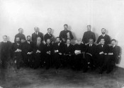 Группа старшин Предпарламента: Ф. Родичев, Н. Кутляр, М. Березин, Н. Чайковский, Н. Д. Авксентьев и другие [Изоматериал] : [фотография]. - Петроград, сентябрь-октябрь 1917. - Проекционная печать с негатива, черно-белая ; 13х18 см