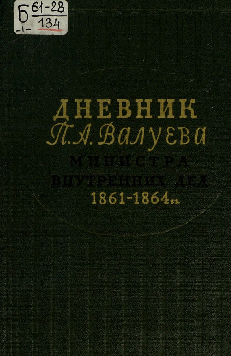Дневник П. А. Валуева министра внутренних дел : в 2 т./ П. А. Валуев ; [ред., введ., биогр. очерк и коммент. П. А. Зайончковского] Акад. наук СССР, Ин-т истории, Гл. арх. упр. при Совете Министров СССР