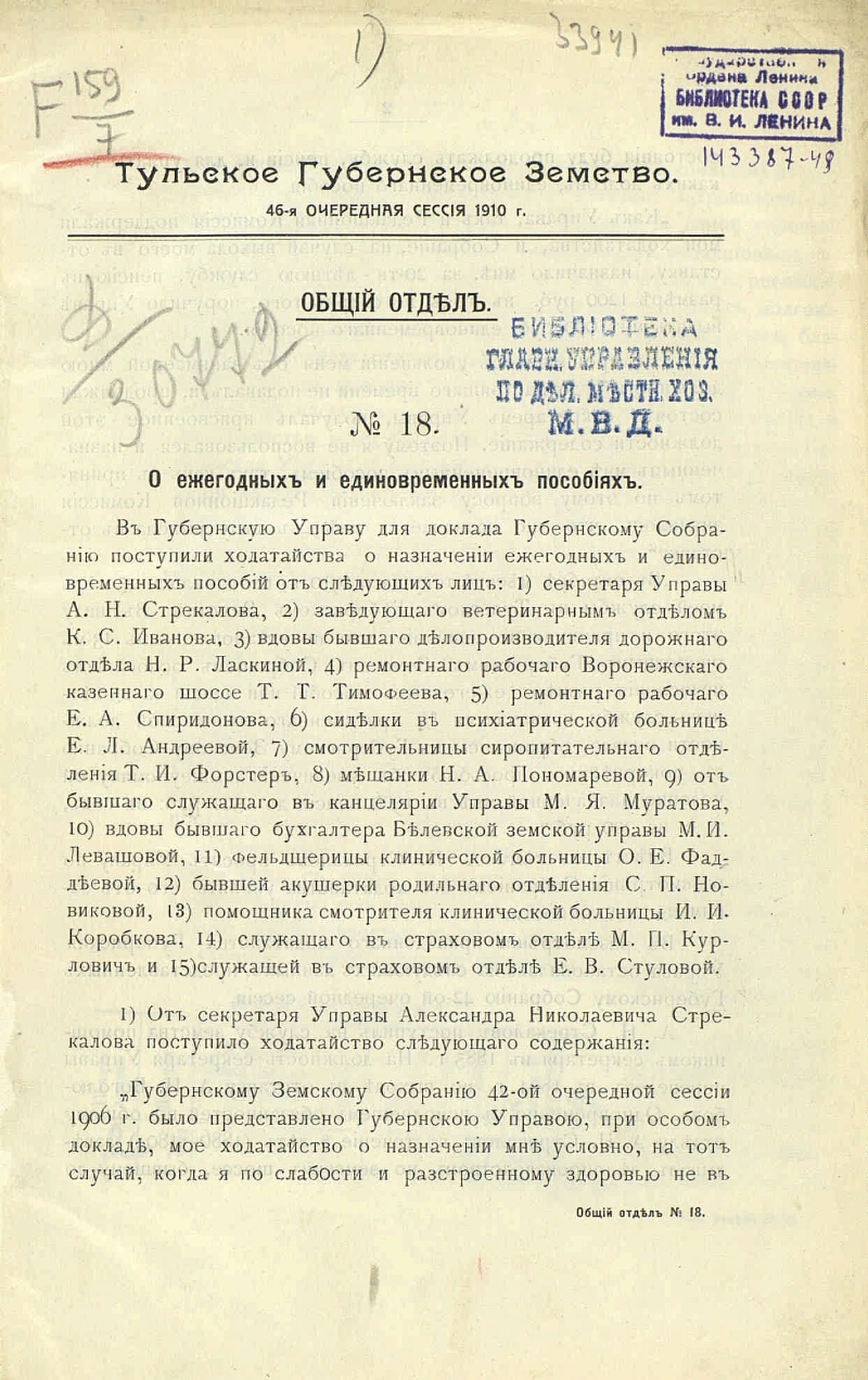 46 очередная сессия 1910 года: Общий отдел. № 18-24. - [1910]. - 28 с.