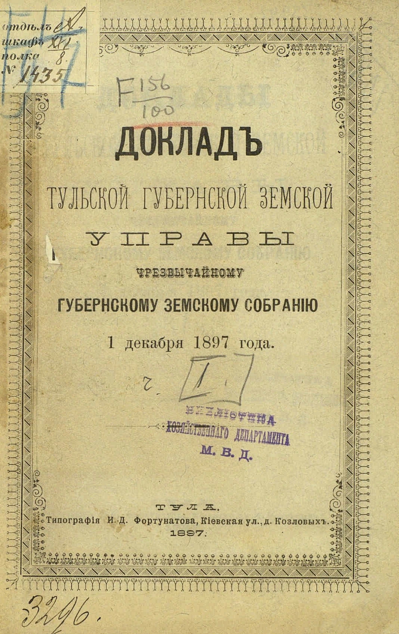 Описание Тульская губ. земская управа Доклады Тульской губернской земской управы ... Губернскому земскому собранию .- Тула , 1866-1900 .- 21 см rus чрезвычайному ... 1 декабря 1897 года. [Ч. 1] .- 1897 .- 147 с. . ББК 63.3(2)5-334я5ББК 63.3(2)531-334я5 Источник: РГБХранение: РГБ Издательство Тип. Н. И. Соколова Объект в каталогах Россия в кон. XVII в. Россия II пол. 90-х гг. XIX в.
