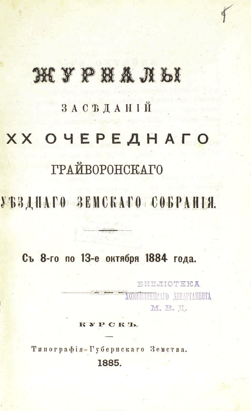 XX очередного ... с 8-го по 13-е октября 1884 года. - Тип. губерн. земства, 1885. - 388 с. - Печать библиотеки Хозяйственного департамента МВД
