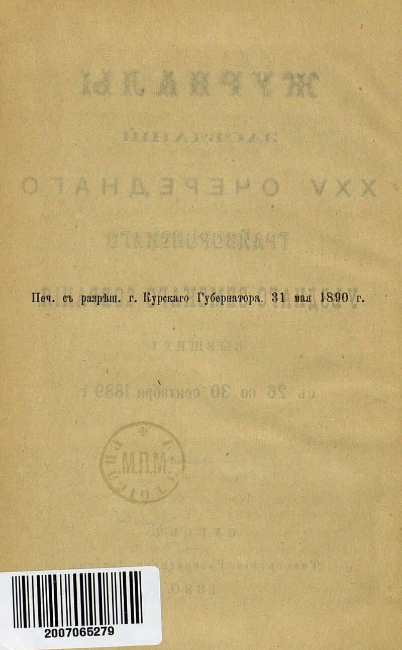 XXV очередного ... с 26 по 30 сентября 1889 года. - Тип. губерн. земства, 1890. - X, 207 с. - Печать библиотеки М. П. М.