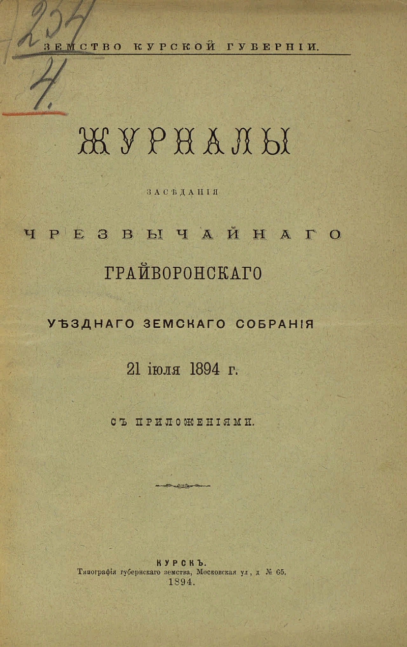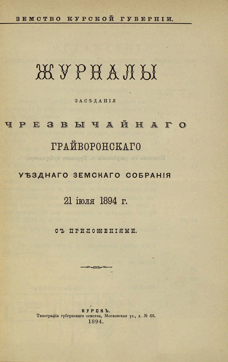 чрезвычайного ... 21 июля 1894 года : с прил. - Тип. губерн. земства, 1894. - IV, 70 с. - В надзаг.: Земство Курской губернии