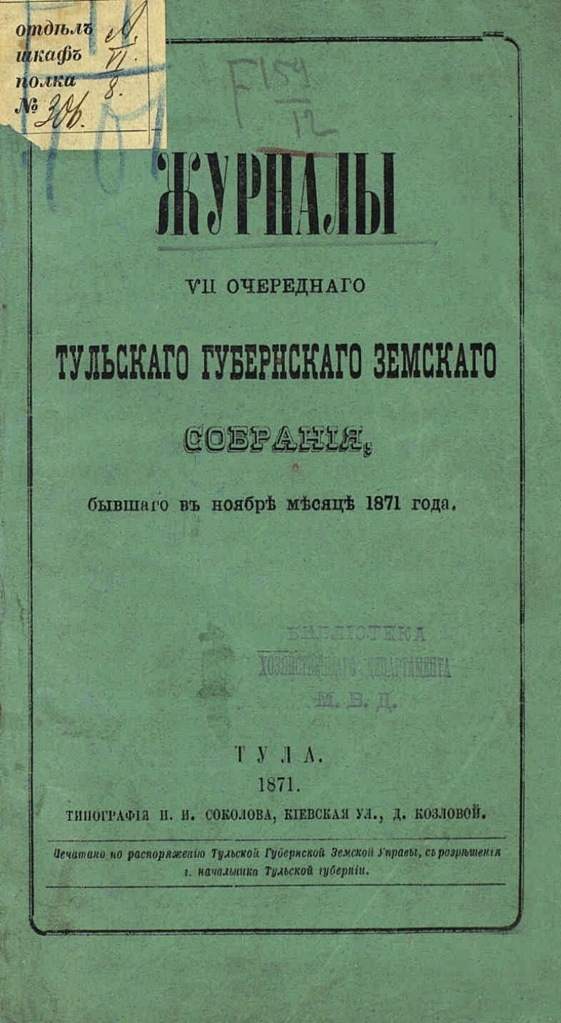 . - Тула : Тип. Н. И. Соколова , 1866-1917