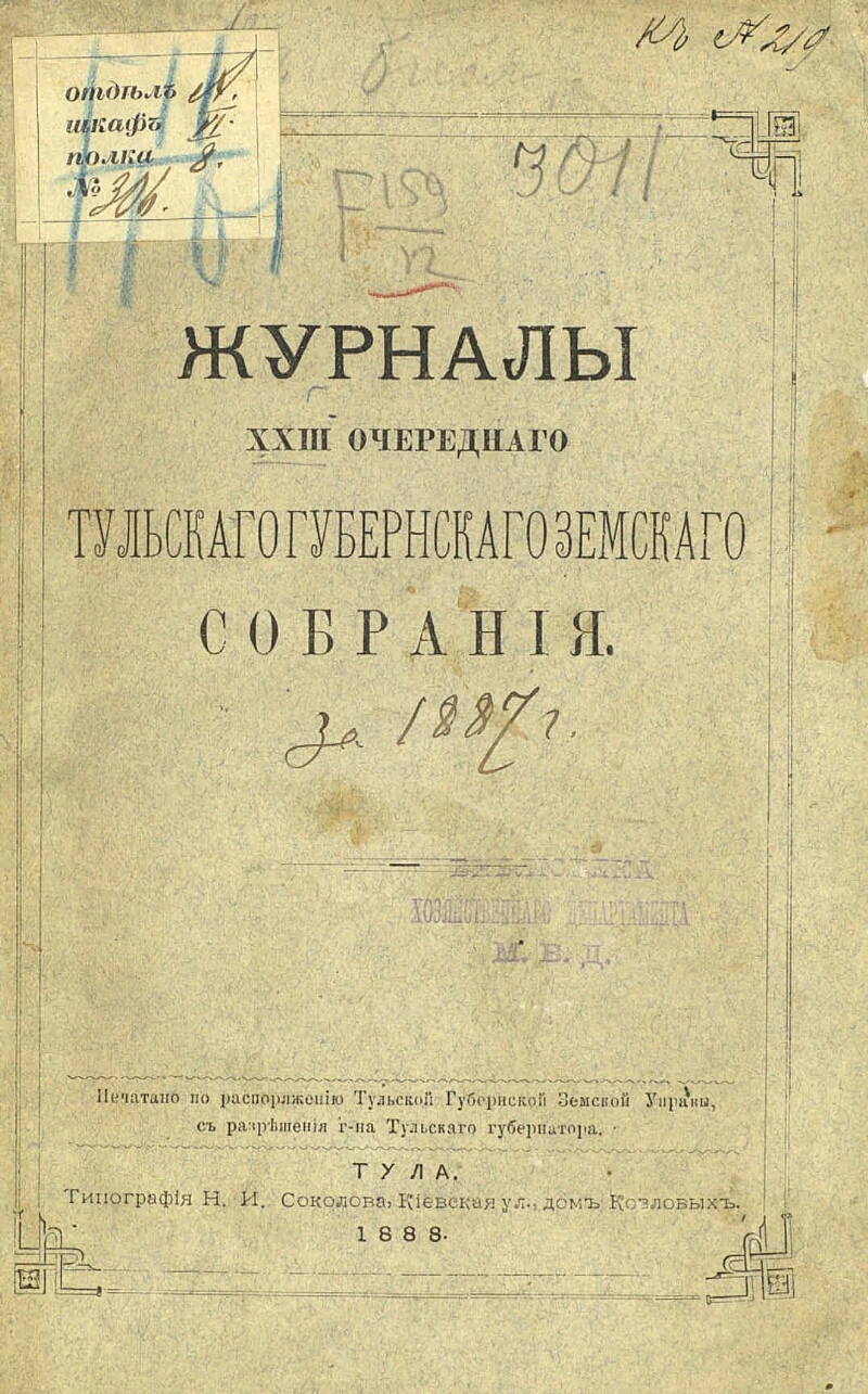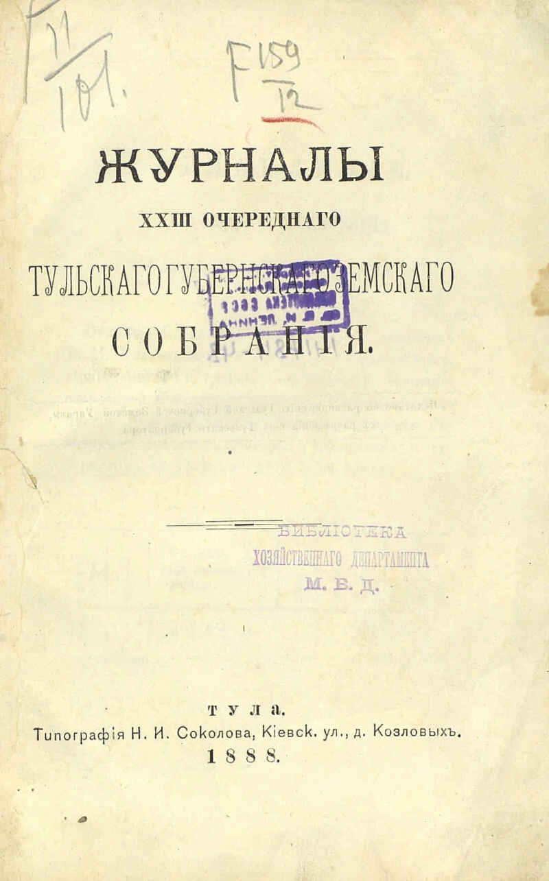 Журналы ... Тульского губернского земского собрания .../ Тул. губ. земство