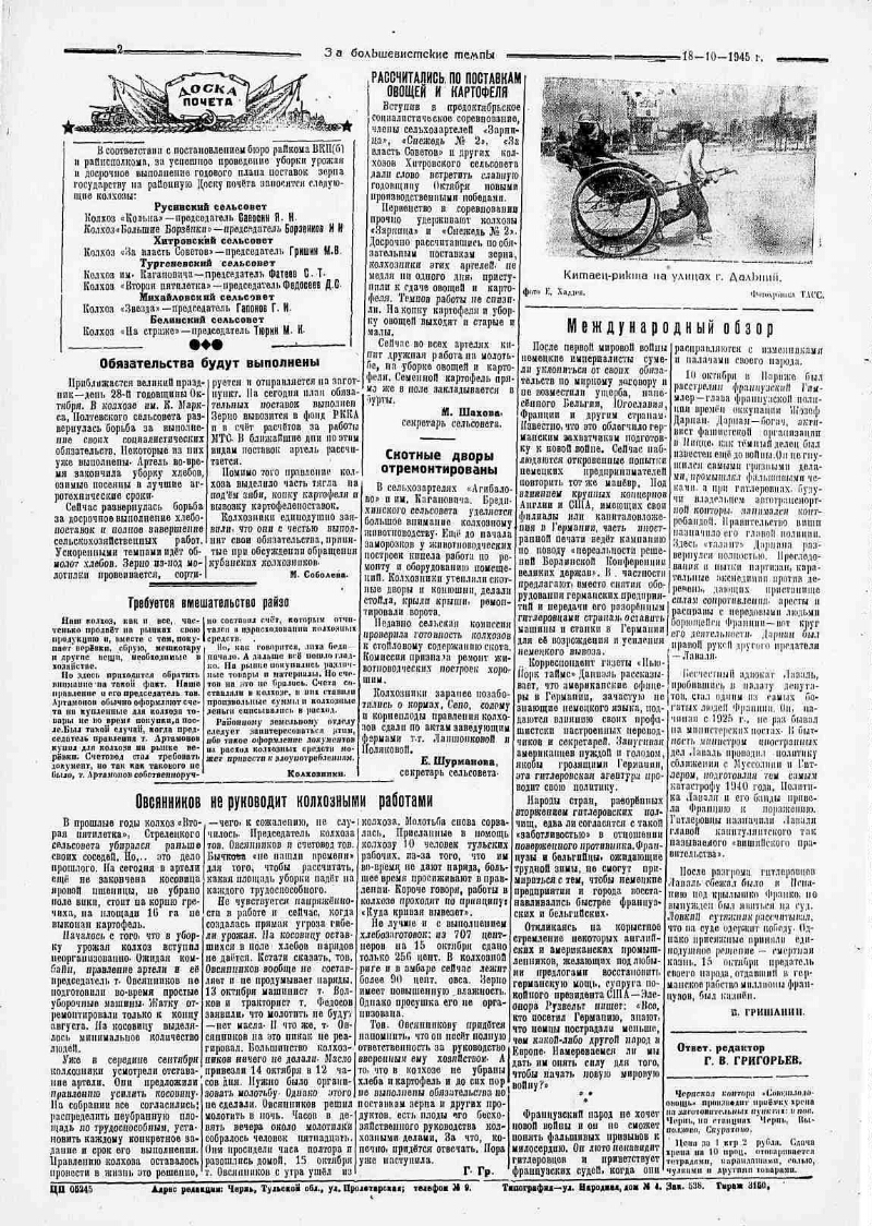 1945, № 46 (2068) (18 окт.). - 2 с.