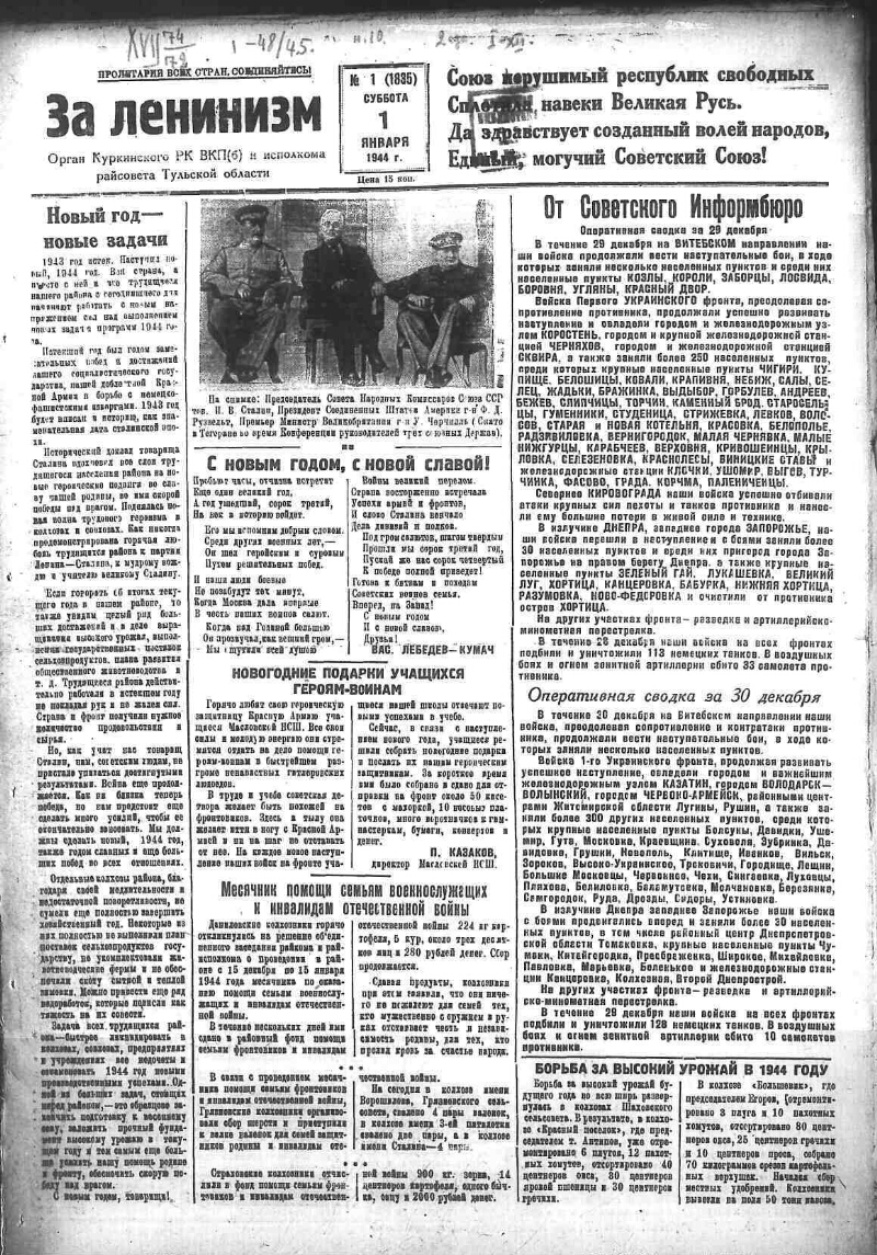 1944, № 1 (1835) (1 янв.). - 2 с.