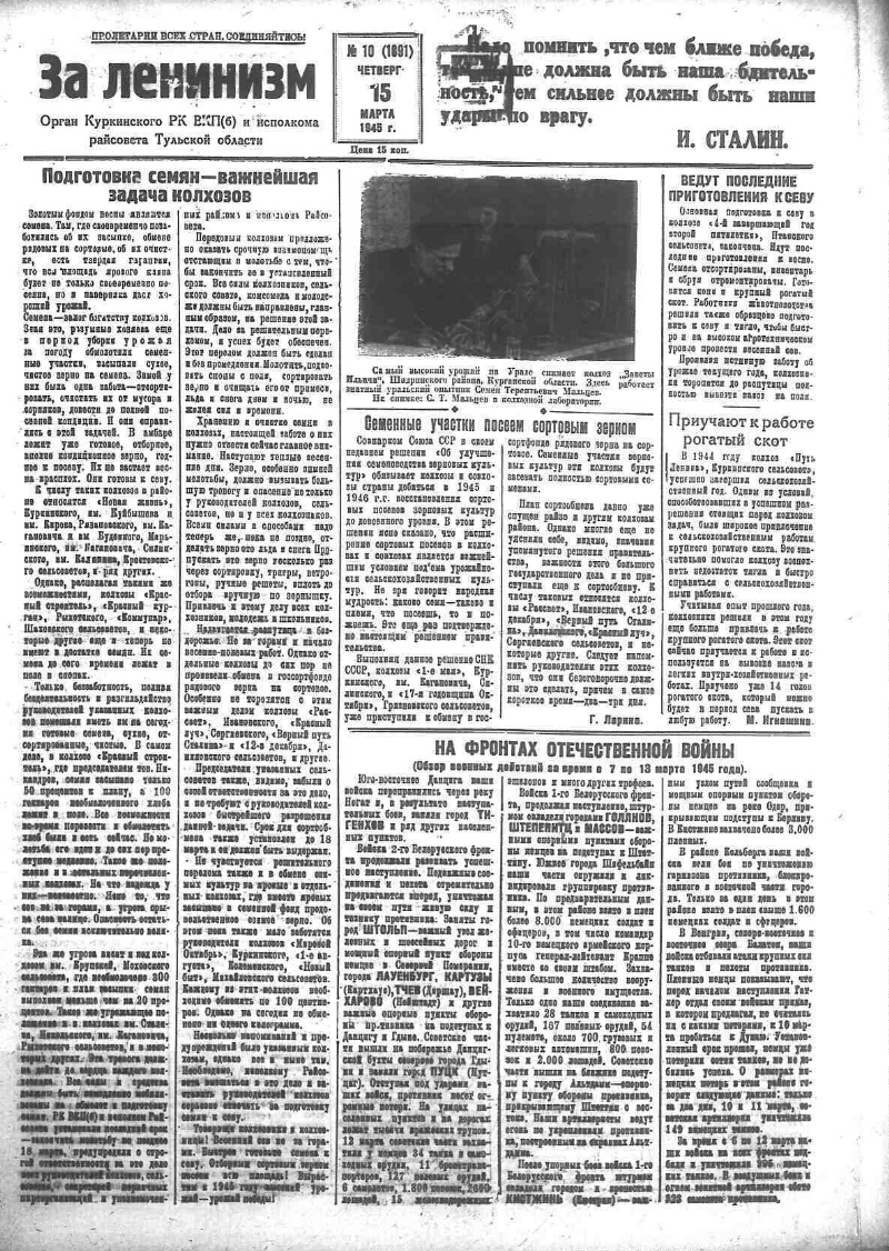За ленинизм : орган Куркинского РК ВКП(б) и районного Совета депутатов трудящихся Тульской области