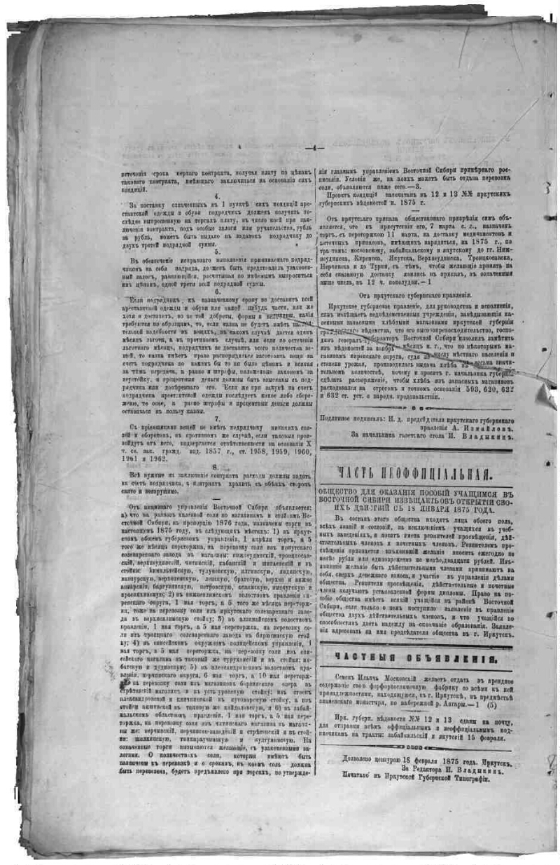 Описание Иркутские губернские ведомости . - Иркутск : Иркутское губернское правление , 1857- 1875, № 14. - 4 с. . 1. История - Периодические издания - Россия ББК 63.3(28-8Ирк)522я51 Источник копии: Иркутская ОГУНБМесто хранения оригинала: Иркутская ОГУНБ Издательство Иркутское губернское правление Объект в каталогах История В коллекциях Отечественная периодика в фонде Президентской библиотеки → Газеты → И → Иркутские губернские ведомости. Иркутск. → 1875