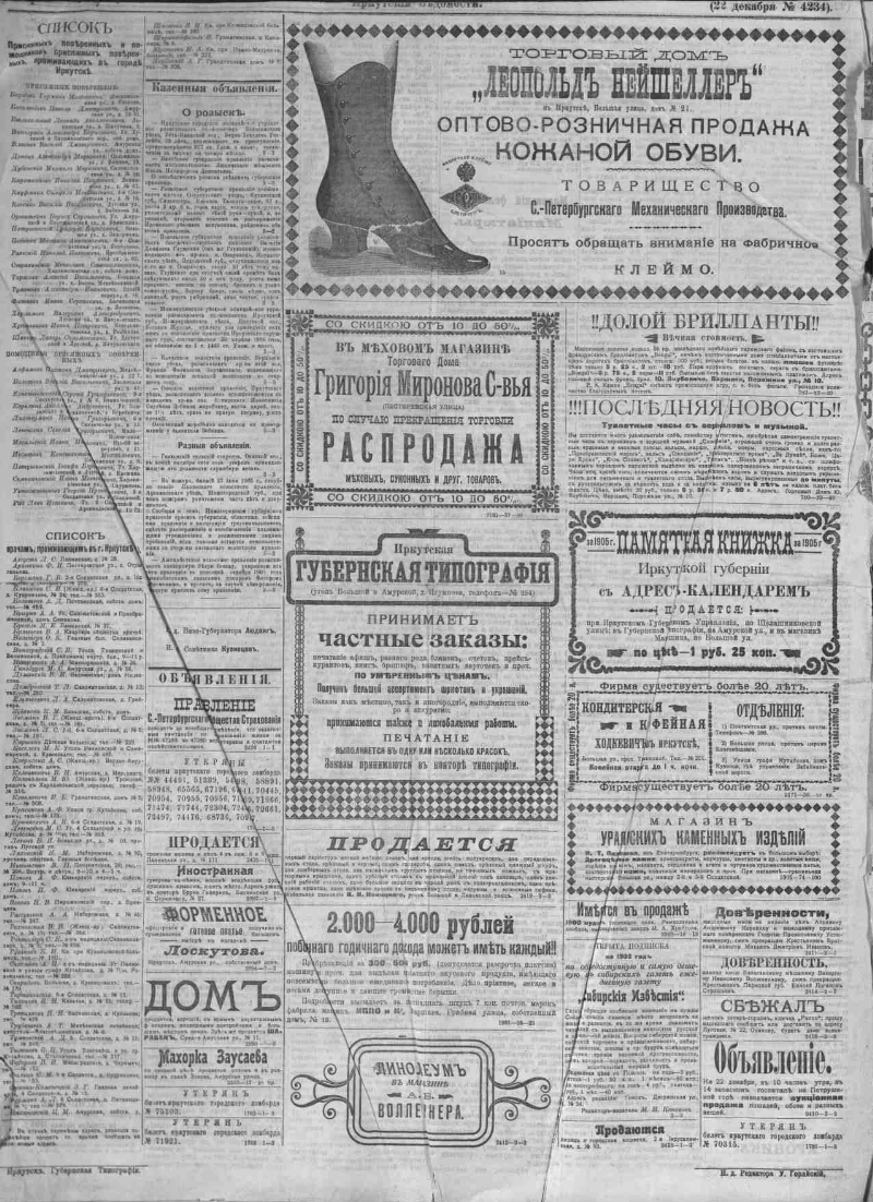 Описание Иркутские губернские ведомости . - Иркутск : Иркутское губернское правление , 1857- 1905, № 4234 (22 дек.). - 4 с. . 1. История -- Периодические издания -- Россия. 2. Иркутская губерния. ББК 63.3(28-8Ирк)532я51 Источник электронной копии: Иркутская ОГУНБМесто хранения оригинала: Иркутская ОГУНБ Издательство Иркутское губернское правление Объект в каталогах История В коллекциях Отечественная периодика в фонде Президентской библиотеки → Газеты → И → Иркутские губернские ведомости. Иркутск. → 1905