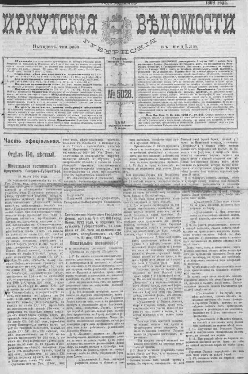 Описание Иркутские губернские ведомости . - Иркутск : Иркутское губернское правление , 1857- 1909, № 5028. - 4 с. . 1. История -- Периодические издания -- Россия. 2. Иркутская губерния. ББК 63.3(28-8Ирк)533я51 Источник электронной копии: Иркутская ОГУНБМесто хранения оригинала: Иркутская ОГУНБ Издательство Иркутское губернское правление Объект в каталогах История В коллекциях Отечественная периодика в фонде Президентской библиотеки → Газеты → И → Иркутские губернские ведомости. Иркутск. → 1909