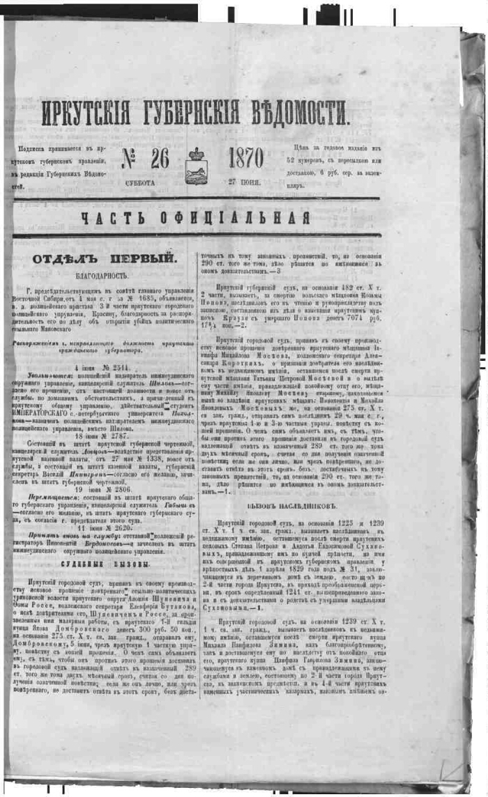 Описание Иркутские губернские ведомости . - Иркутск : Иркутское губернское правление , 1857- 1870, № 26. - 6 с. . 1. История - Периодические издания - Россия ББК 63.3(28-8Ирк)522я51 Источник копии: Иркутская ОГУНБМесто хранения оригинала: Иркутская ОГУНБ Издательство Иркутское губернское правление Объект в каталогах История В коллекциях Отечественная периодика в фонде Президентской библиотеки → Газеты → И → Иркутские губернские ведомости. Иркутск. → 1870