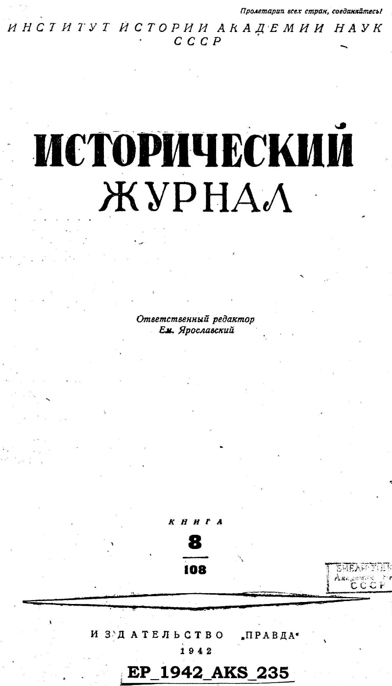 Исторический журнал : ежемесячный популярный иллюстрированный журнал по вопросам гражданской истории. - Москва : Правда , 1937-1945 |