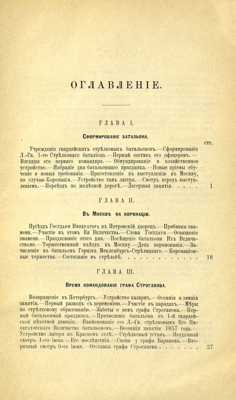 Исторический очерк Лейб-гвардии Первого Стрелкового Его императорского величества батальона с 1856 по 1885 год / составил генерал-лейтенант П. Карцов. - С.-Петербург : тип. Ф.С. Сущинского, 1885. - VIII, 304 с., 5 л. пл. : ил. ; 25 см