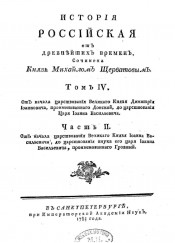 История российская от древнейших времян./ Сочинена князь Михайлом Щербатовым