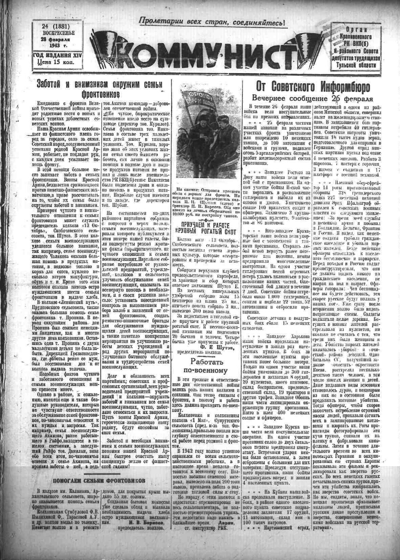 1943, № 24 (1881) (28 февр.). - 2 с.