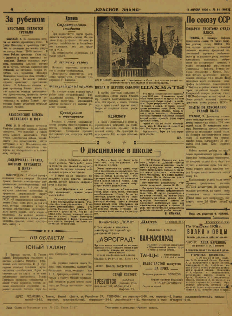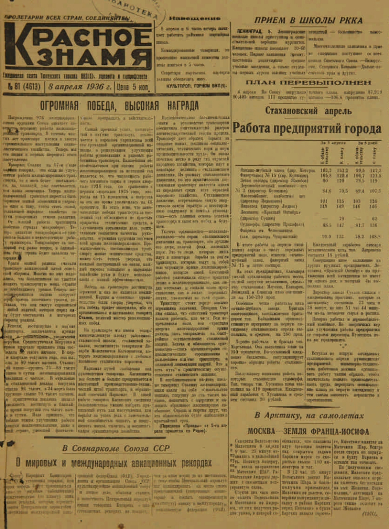 1936, № 81 (4613) (8 апр.). - 4 с.