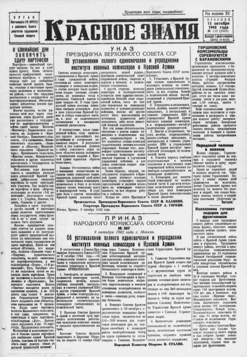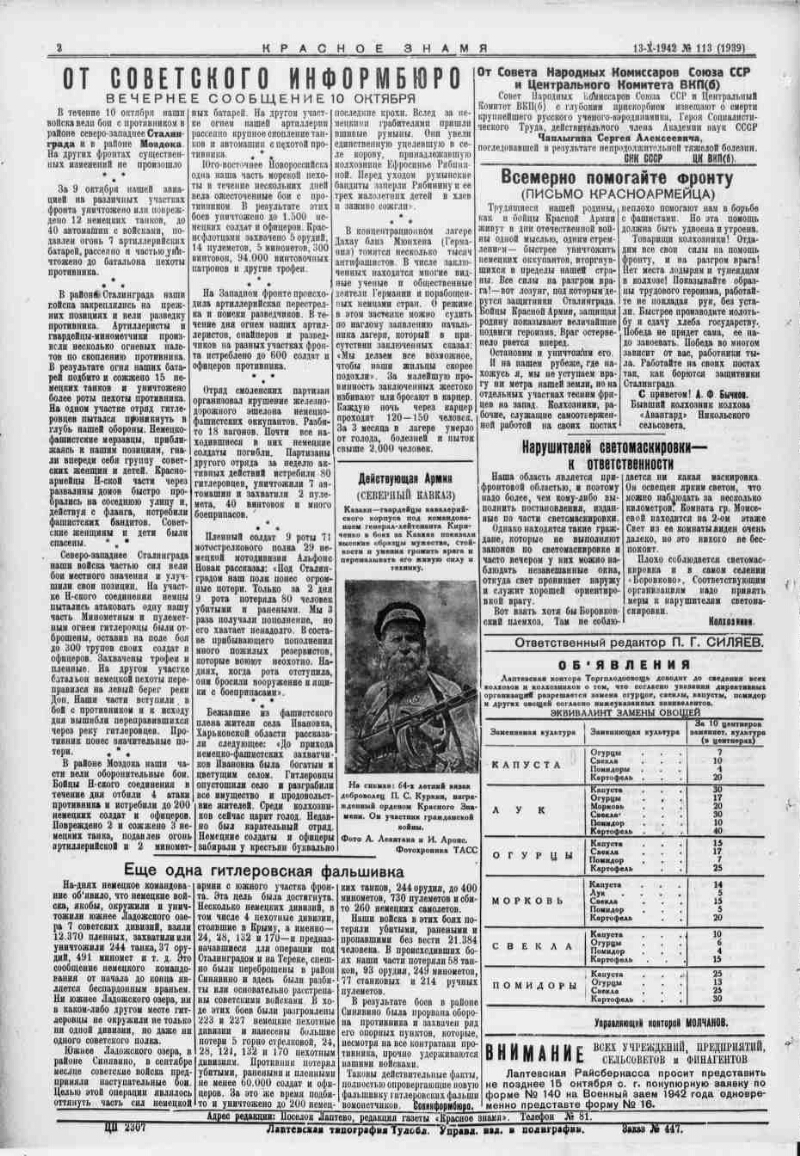 1942, № 113 (1939) (13 окт.). - 2 с.