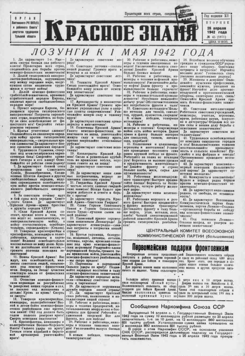 1942, № 45 (1871) (28 апр.). - 2 с.